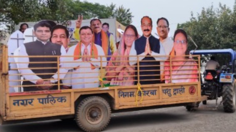 कोरबा।छत्तीसगढ़ राज्य स्थापना की रजत जयंती के अवसर पर आयोजित राज्योत्सव से पहले एक लापरवाही भरा मामला सामने आया है। ओपन थिएटर में 2 से 4 नवंबर तक होने वाले कार्यक्रम स्थल पर मुख्यमंत्री, उपमुख्यमंत्री, श्रम मंत्री सहित अन्य जनप्रतिनिधियों के कटआउट को पशु ट्रॉली में ढोए जाने की घटना को लेकर नगर निगम में हड़कंप मच गया है।